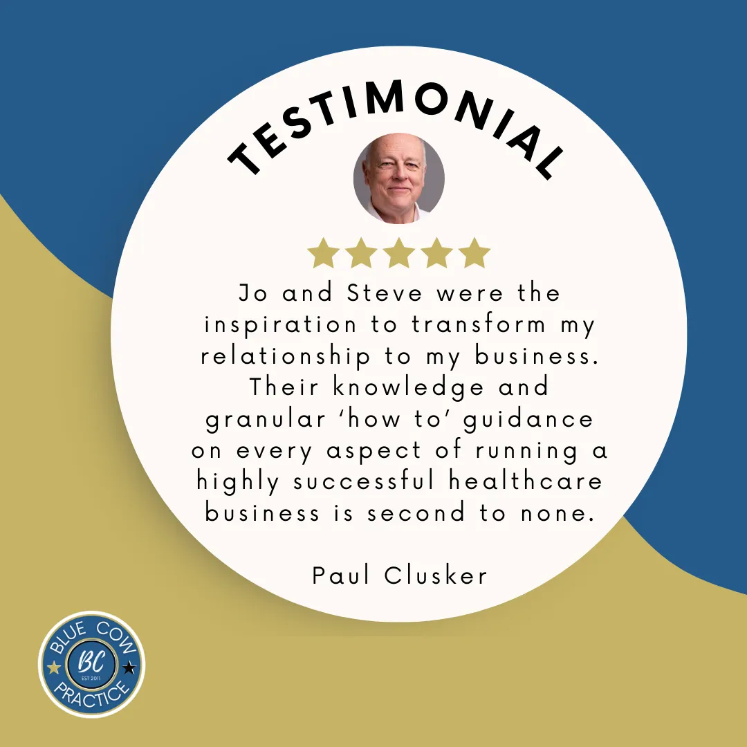 Blue Cow Practice is led by Jo and Steve Davison — chiropractors, practice owners, strategists, mentors, and authors.